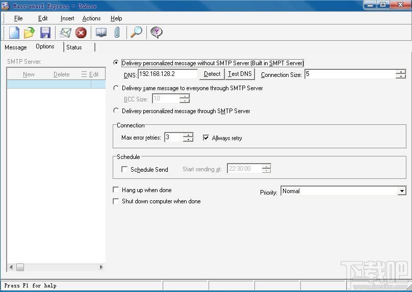 Mass-emailExpress是一个功能强大的邮件群发工具,内置高速SMTP发送服务器,可以通过你的电脑直接将邮件发送到对方的邮箱中,简单方便!